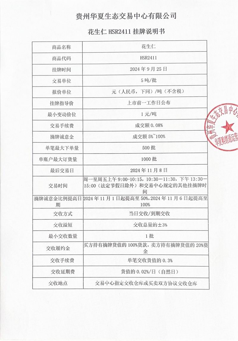 花生仁HSR2411挂牌说明书