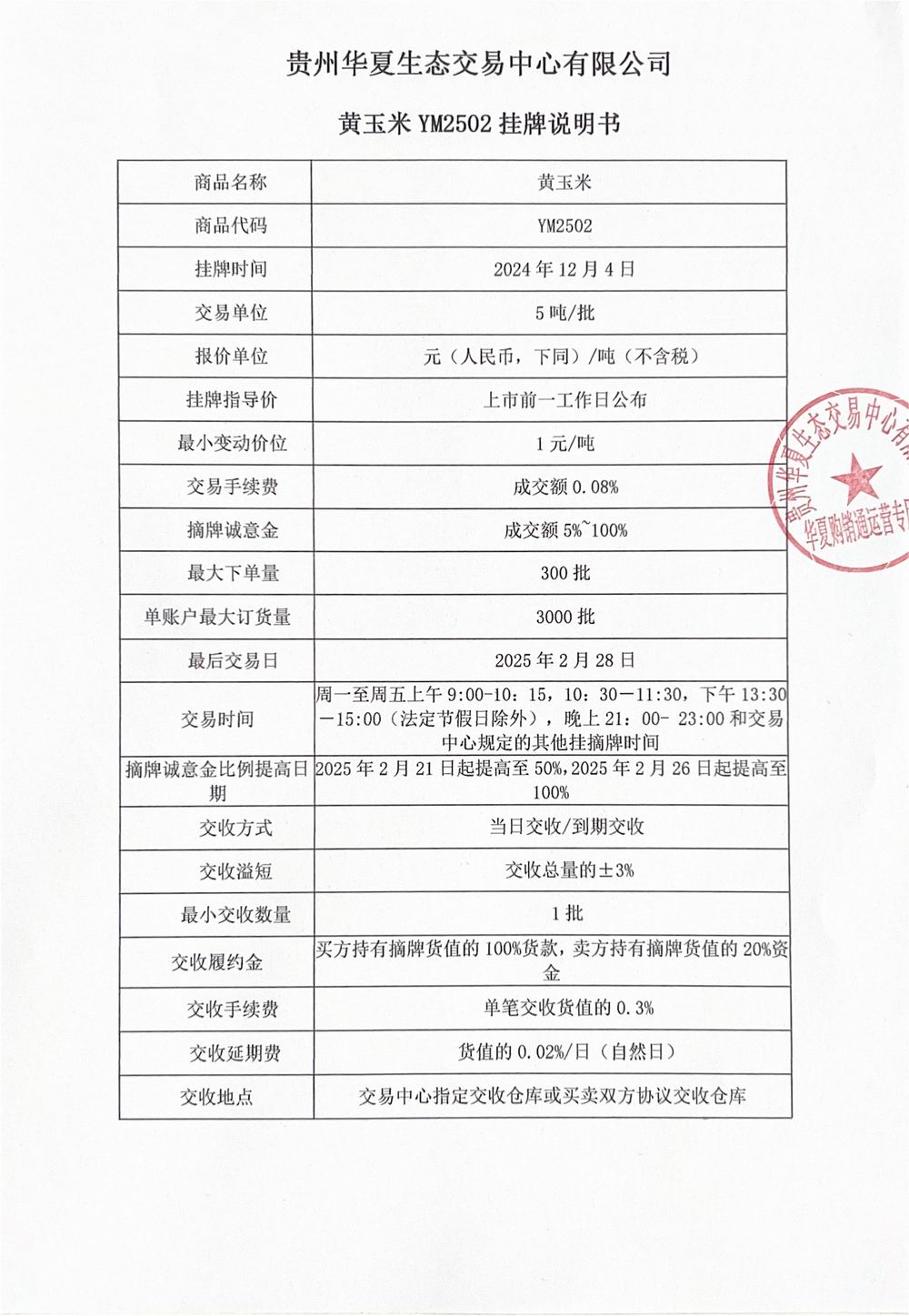 黄玉米YM2502挂牌说明书
