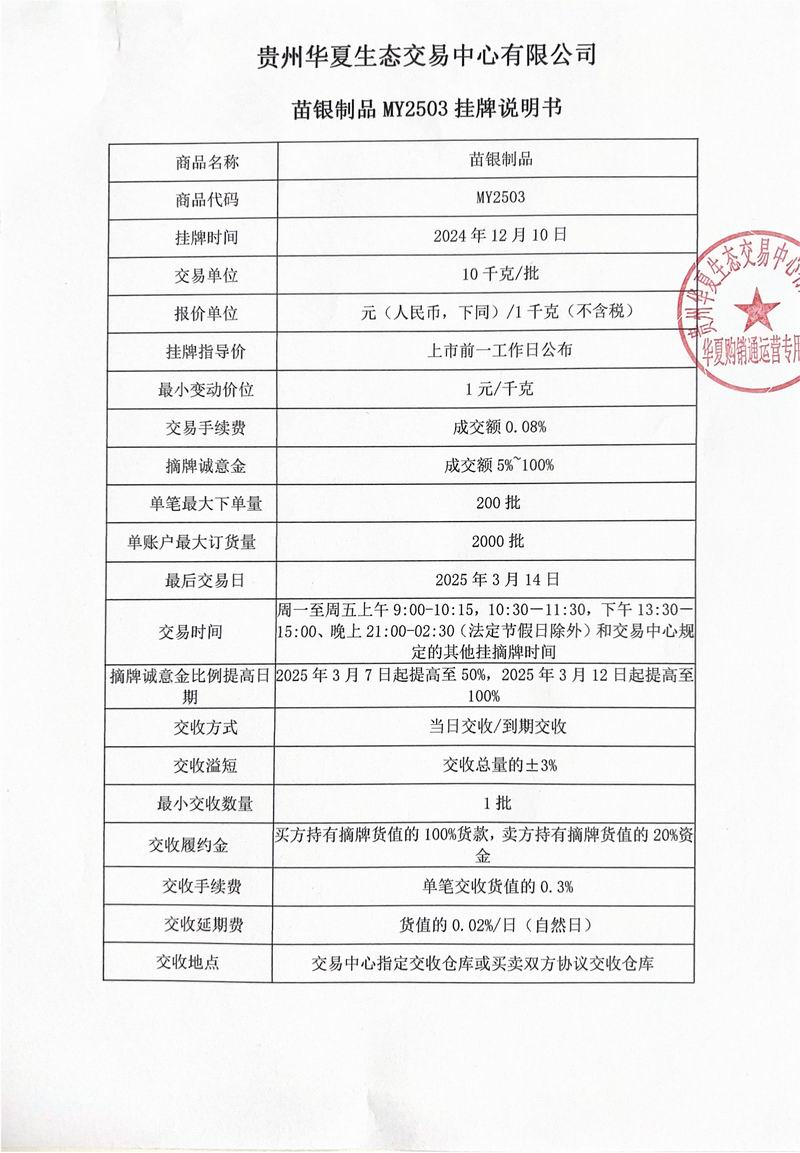 苗银制品MY2503挂牌说明书