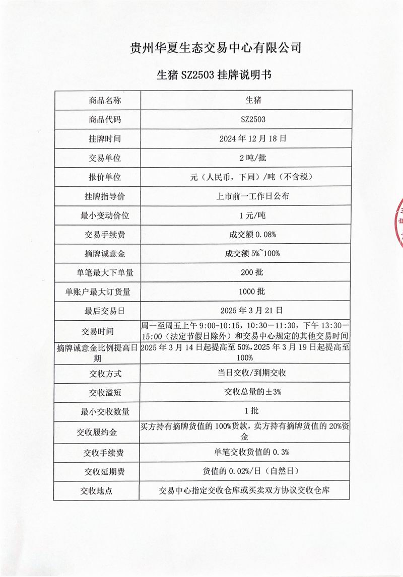 生猪SZ2503挂牌说明书
