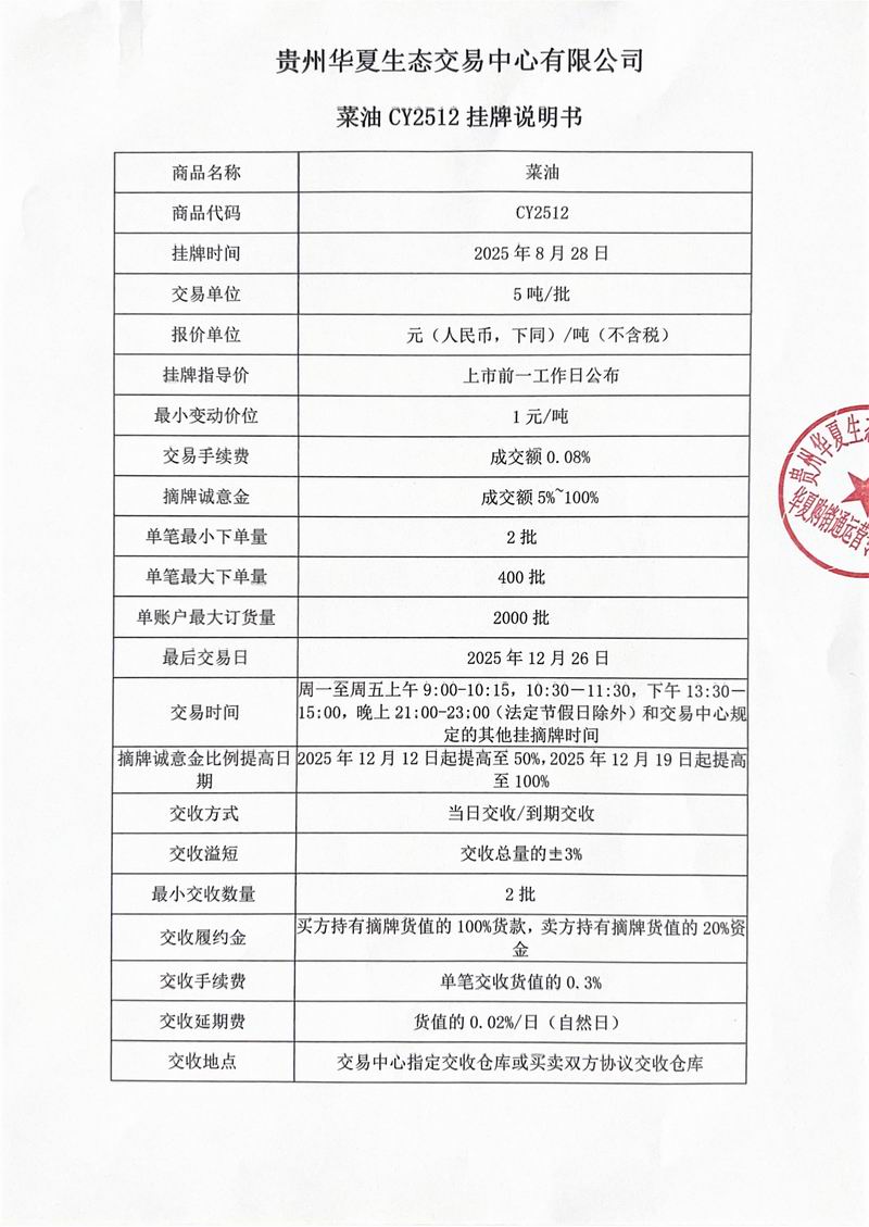 菜油CY2512挂牌说明书