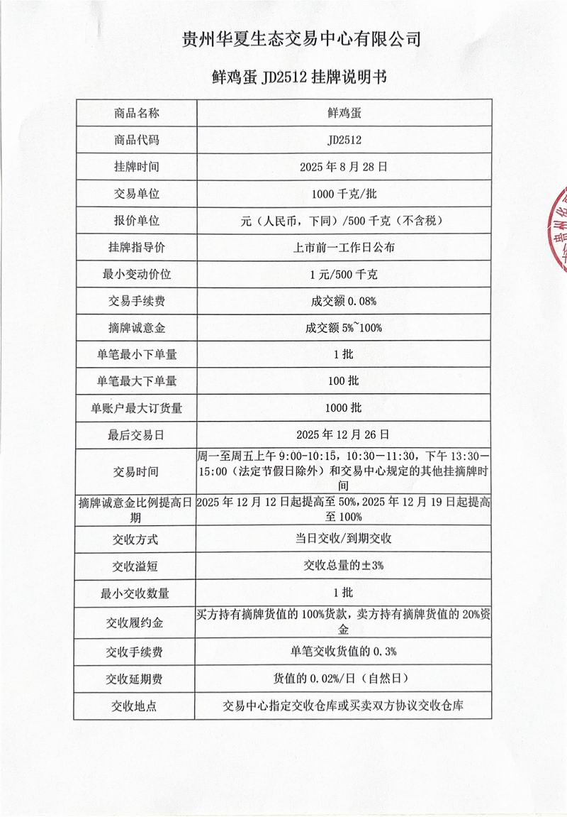 鲜鸡蛋JD2512挂牌说明书
