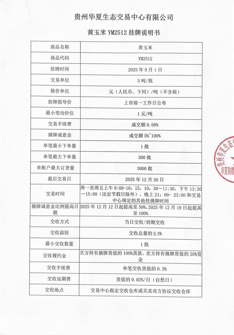 黄玉米YM2512挂牌说明书